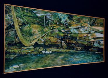 There's much to see . So, take your time, look around, and learn all there is to know about the Fay Wood Studio. This page shows the oil paintings on canvas portfolio. There is the Tapestries of My Mind series; objects wrapped in a variety of fabrics and used as models for painting - the Garden series ;Four Seasons & Johns Nash are examples - and The Platte Clove series; a group of river paintings of a local watering spot. I hope you like them!